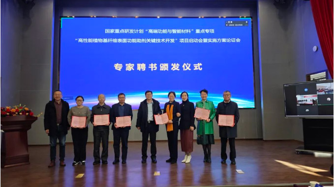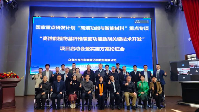 2025年3月20日,由華泰隆化學(xué)助劑有限公司牽頭承擔(dān)的國家重點研發(fā)計劃“高端功能與智能材料”重點專項“高性能植物基纖維表面功能助劑關(guān)鍵技術(shù)開發(fā)”項目啟動暨實施方案論證會在烏魯木齊市新疆隆成集團(tuán)總部舉行。中國科學(xué)院院士、東華大學(xué)材料科學(xué)與工程學(xué)院院長朱美芳,國家自然科學(xué)基金委員會高技術(shù)研究發(fā)展中心副主任吳根、材料處處長雷瑾亮,自治區(qū)工業(yè)和信息化廳黨組成員、副廳長程多福,以及來自全國各地的行業(yè)專家等近30位嘉賓如約而至參加本次會議。
