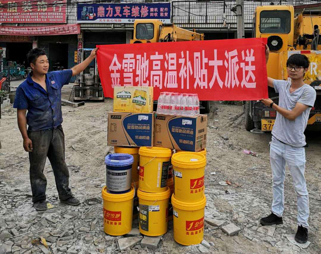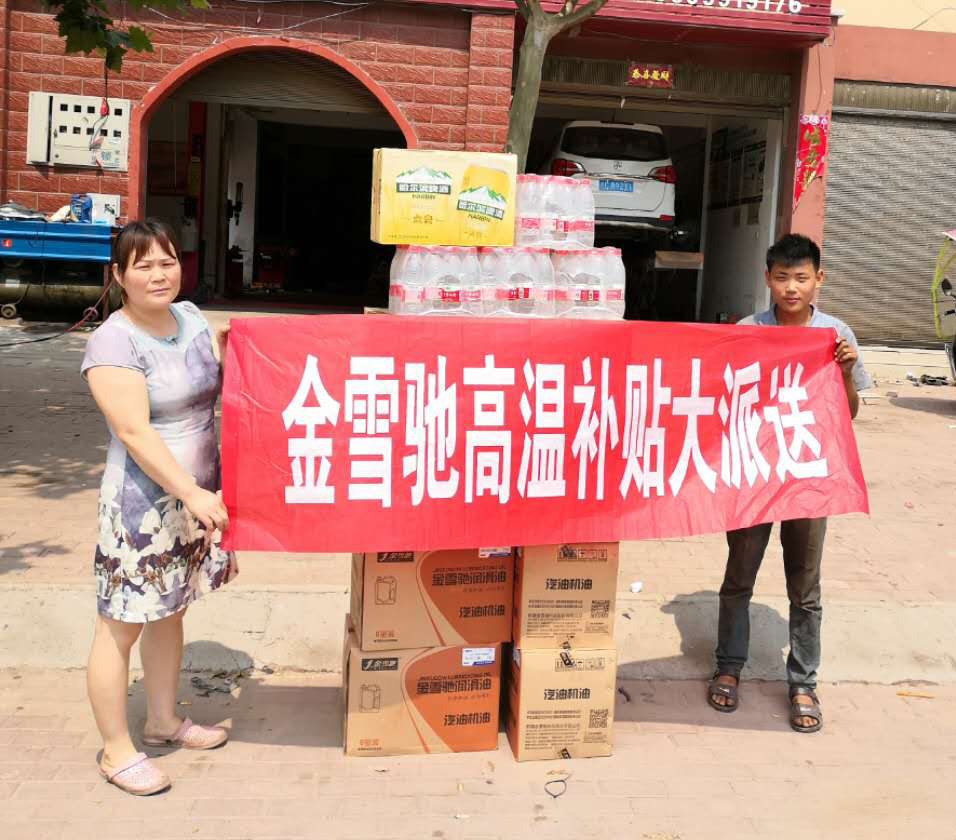 長時間高溫工作,體能消耗很大,極易出現(xiàn)中暑的情況。金雪馳送清涼小組成員與當(dāng)?shù)亟?jīng)銷商來到全國每一家金雪馳終端修理門店,為他們送去礦泉水、啤酒、粽子、飲料等夏季清涼物資,真真正正地把“清涼”送到一線。在終端門店,金雪馳送清涼小組成員還就如何在高溫天氣下開展作業(yè)及如何做好防暑降溫的小常識對汽修工們進(jìn)行普及,目的是讓維修師傅們能夠在高溫環(huán)境下有更好的自我保護(hù)意識和能力,減少中暑等意外狀況的發(fā)生。