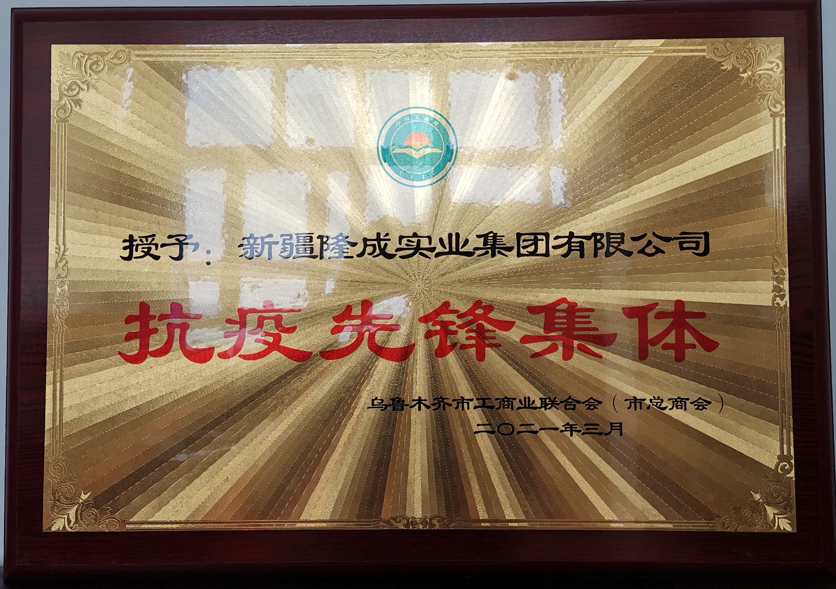 新疆隆成實業(yè)集團有限公司被烏魯木齊市工商業(yè)聯合會(市總商會)評為“抗疫先鋒集體”榮譽稱號。